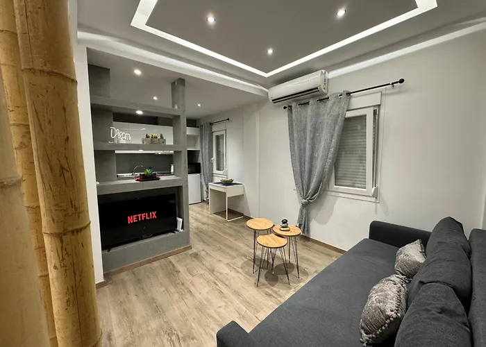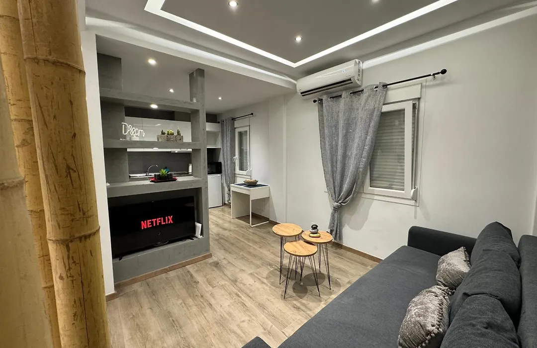 O apartamento Startdreamingminisuite está equipado com comodidades auto-suficientes, incluindo uma cozinha com chaleira elétrica, refrigerador e artigos de vidro. O local está localizado a apenas 150 metros da paragem mais próximo - Antigonidon.